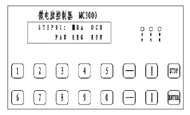 本充电机面板采用液晶显示,设有电压指示(电瓶充电),电流指示,充电 信号,电瓶电量指示,充电时间,充电状态显示,充电参数设定采用数字按键式 调节。